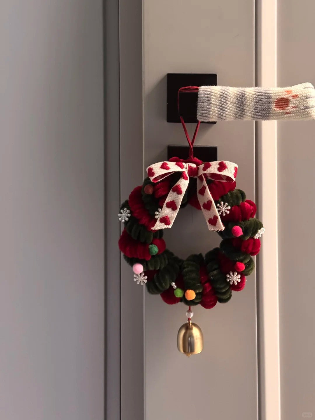 wreath duo: coordinated pipe cleaners, mini accessories (bell, pearls, snowflakes, bow accents)